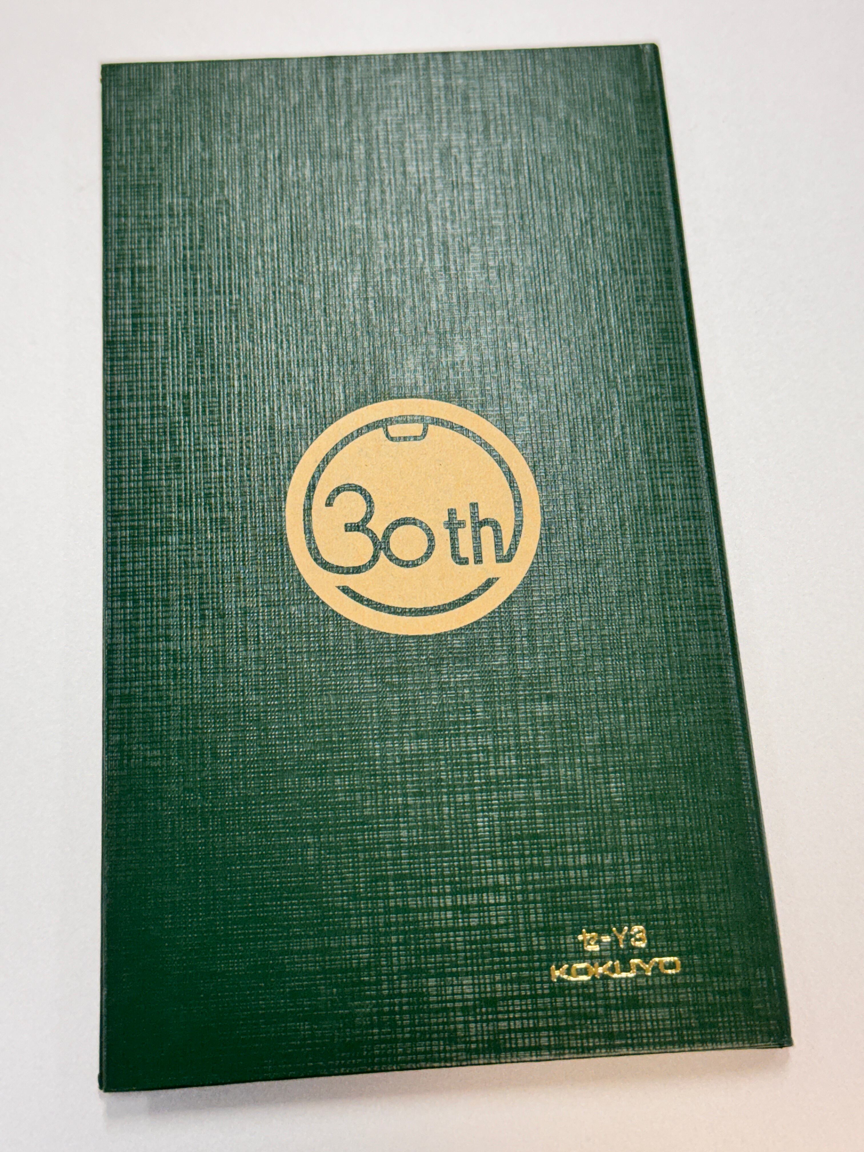 KOKUYO 測量野帳(スケッチブック)に記念ロゴをレーザー加工しました。